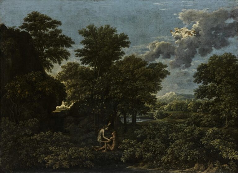 Adam isn’t resisting. He’s lounging about, thinking, letting, Eve convince him.